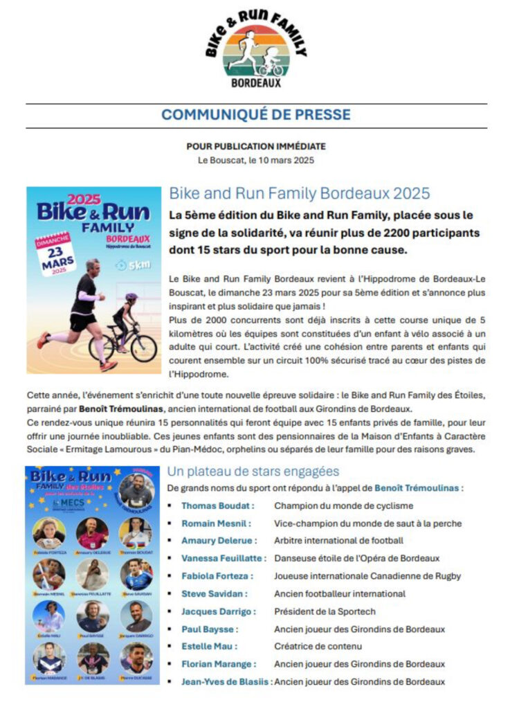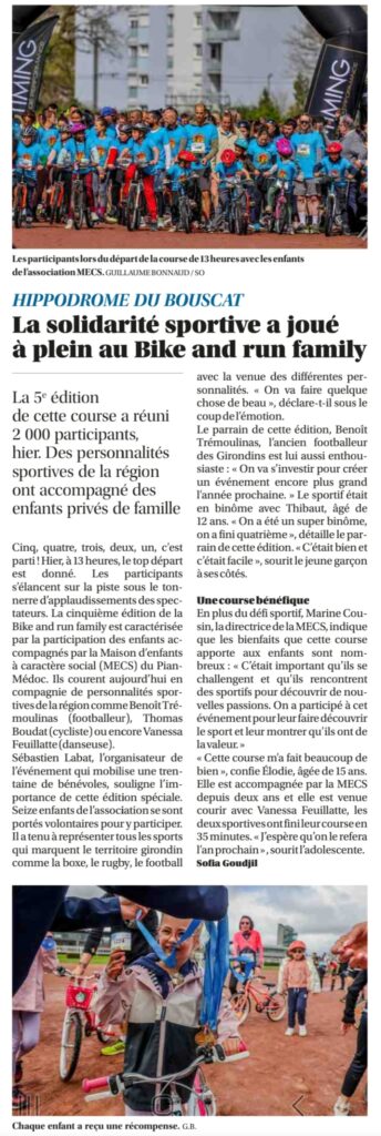 Invité par l’association Bike And Run Family à participer avec d’autres Guests à cette magnifique course solidaire, j’ai eu l’occasion de coacher et d’accompagner un enfant (à moins que ce ne soit l’inverse J) de la Maison d’enfants à caractère social Ermitage Lamourous sur un parcours de 5 kms. Un vrai moment de partage ou les sourires de ces enfants n’ont pas de prix. Une expérience riche, à rééditer l’année prochaine !